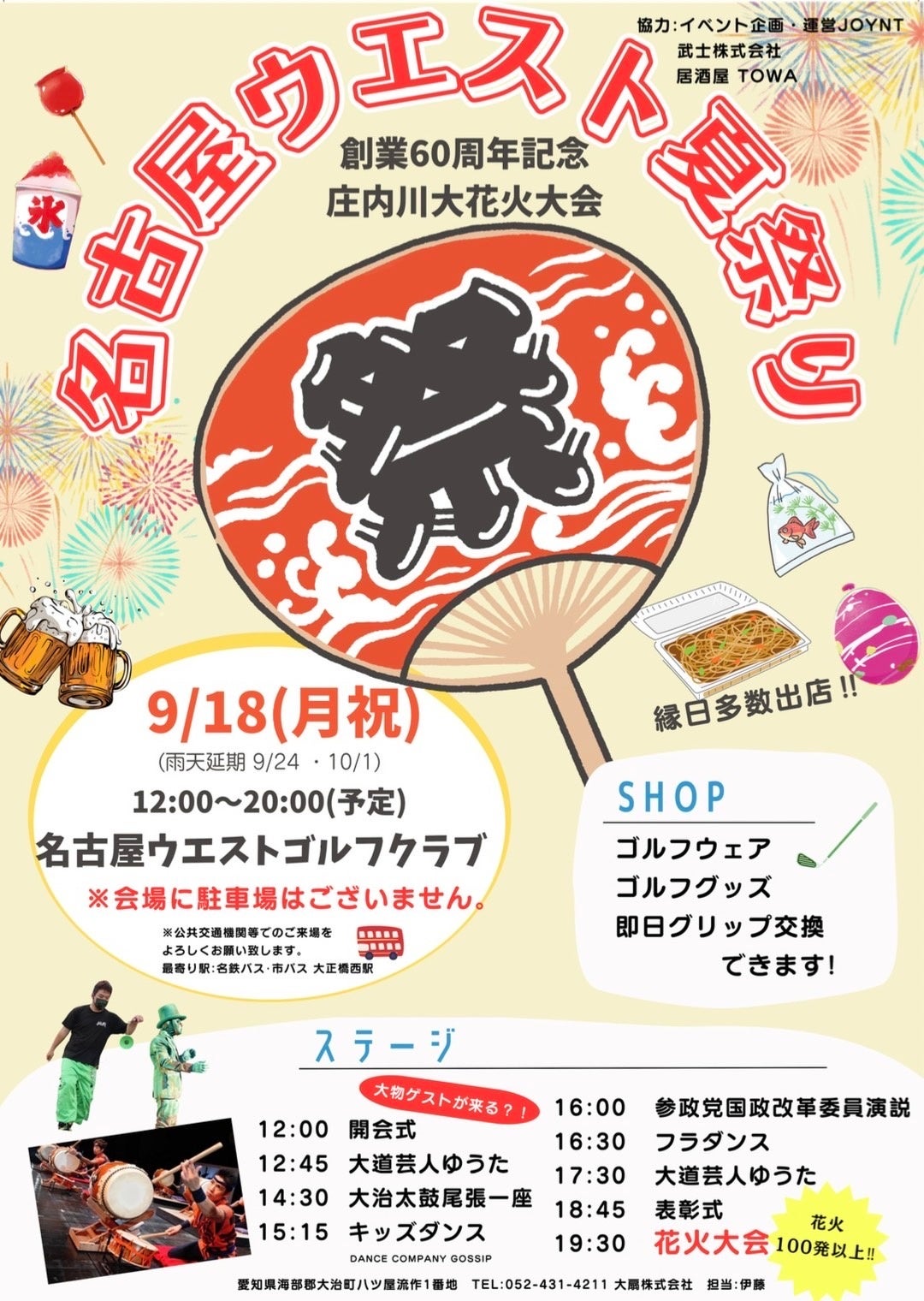 大扇株式会社(本社:名古屋市西区、代表:伊藤嘉邦)が運営する名古屋ウエストゴルフクラブにて、2023年9月18日に創業60周年を記念して、庄内川大花火大会を開催致します。