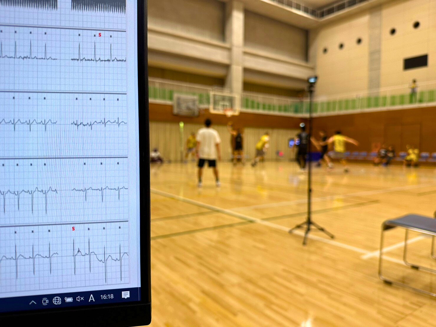 試合中の心拍計測・心電図モニタリングの様子