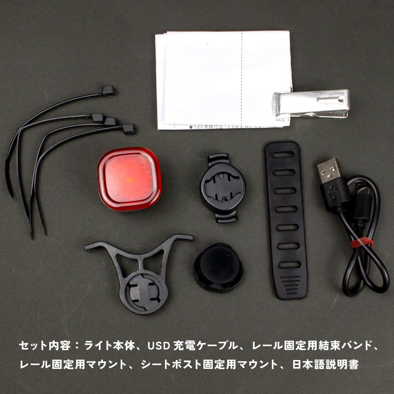 リアライト、ブラケット2種類、USD充電ケーブル (Type-C)、日本語説明書 |