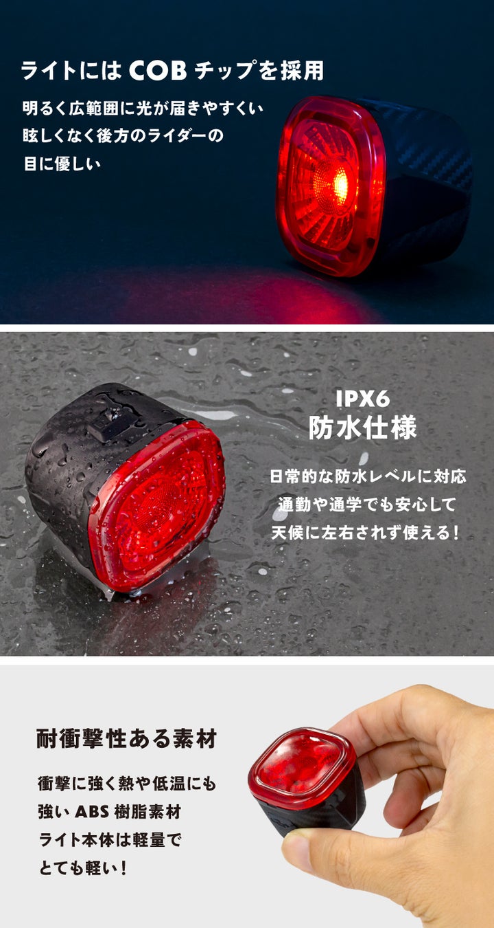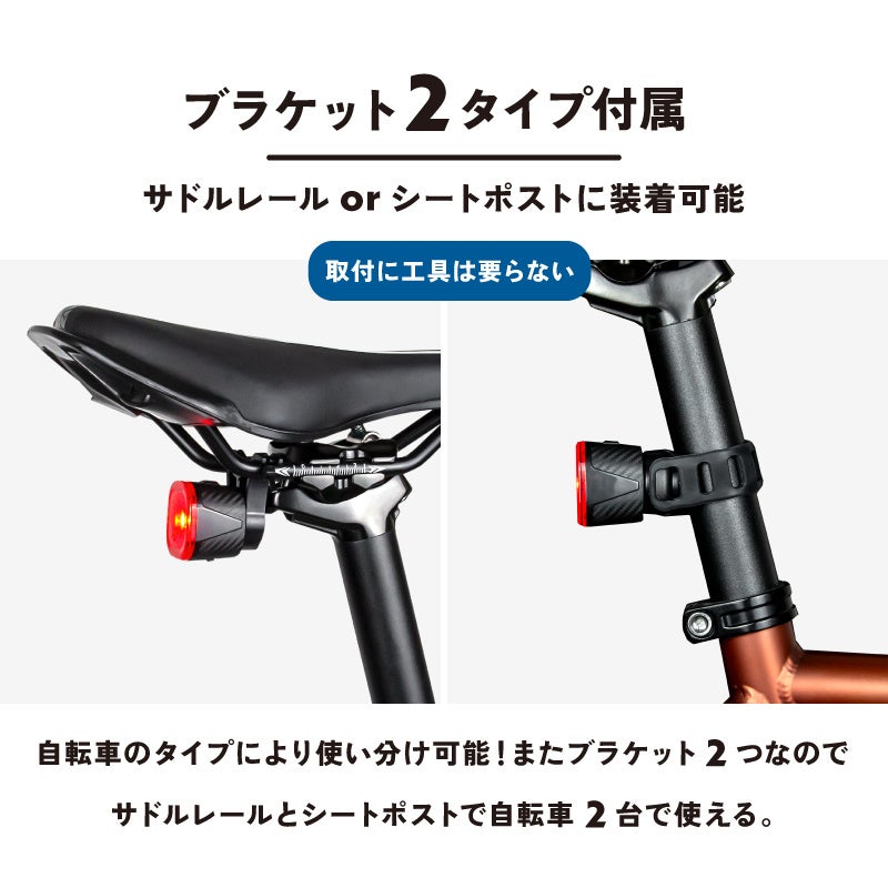 ロードバイクやクロスバイク、mtb、ミニベロなど様々な自転車に装着できるテールライトです。