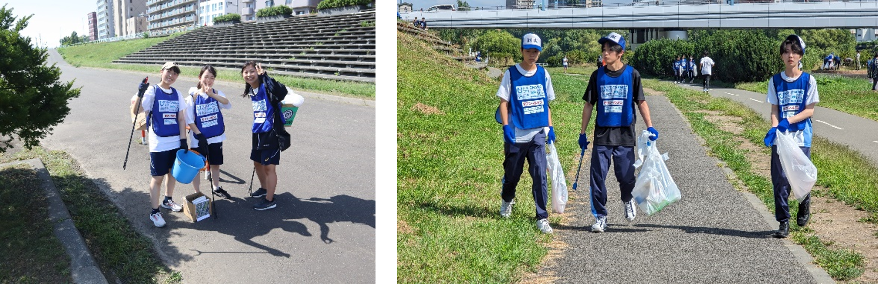 四方を海で囲まれた北海道は海洋ごみの関心が高く、各地でごみ拾いのイベントや清掃活動が行われています。会場の札幌市豊平川河川敷は、普段は市民の憩いの場、きれいに整えられ全くごみは無いように見えますが、実際に歩いてみると景観にそぐわないごみが所々に散乱しています。この残念な光景は、参加者たちのごみ拾いの意欲を駆り立て、やる気満々。競技開始とともにみんな勇んでごみを拾いに行きました。