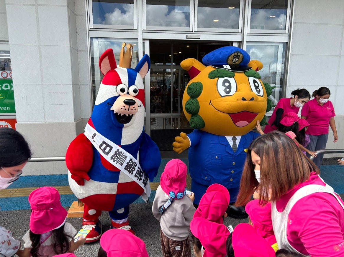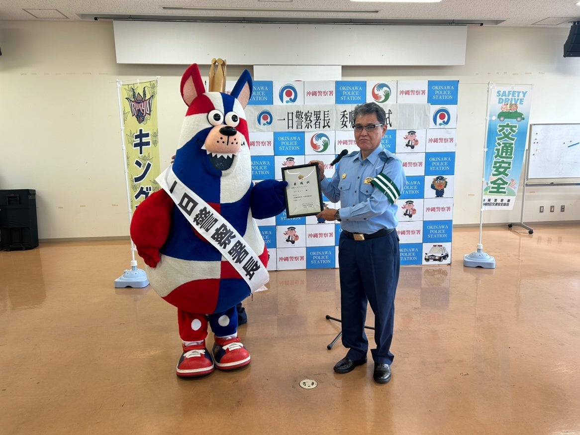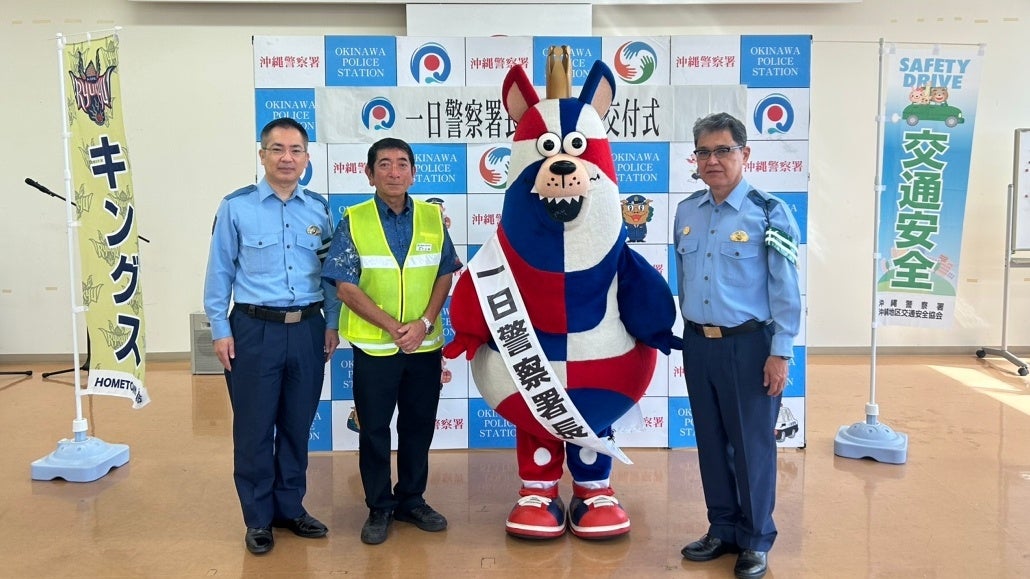9月21日(木)〜9月30日(土)までの期間に行われる「秋の全国交通安全運動」の「沖縄警察署 一日警察署長」にゴーディーが就任いたしました。初日となる9月21日(木)には沖縄警察署にて「一日警察署長委嘱状」が交付され、沖縄地区交通安全協会の会員や署員の方たちとマックスバリュー山里店にてチラシ配りをしながら交通安全の呼びかけを行い、啓発活動に取り組みました。