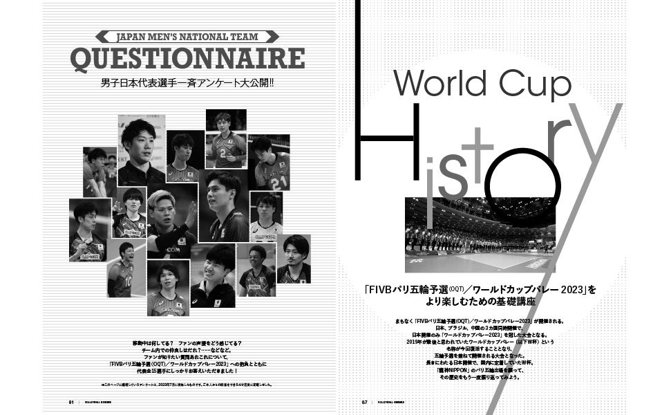 男子日本代表選手一斉アンケート大公開! バレーボールの基礎講座なども…