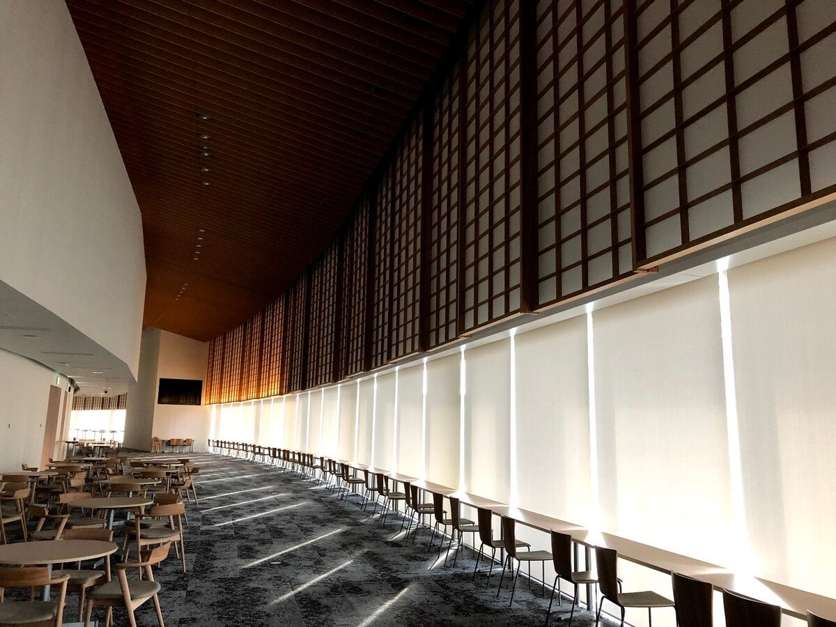 「杜のスタジアム」とも呼ばれる国立競技場には、和の雰囲気漂うラウンジが。競技場にいることを忘れてしまいそう・・・!
