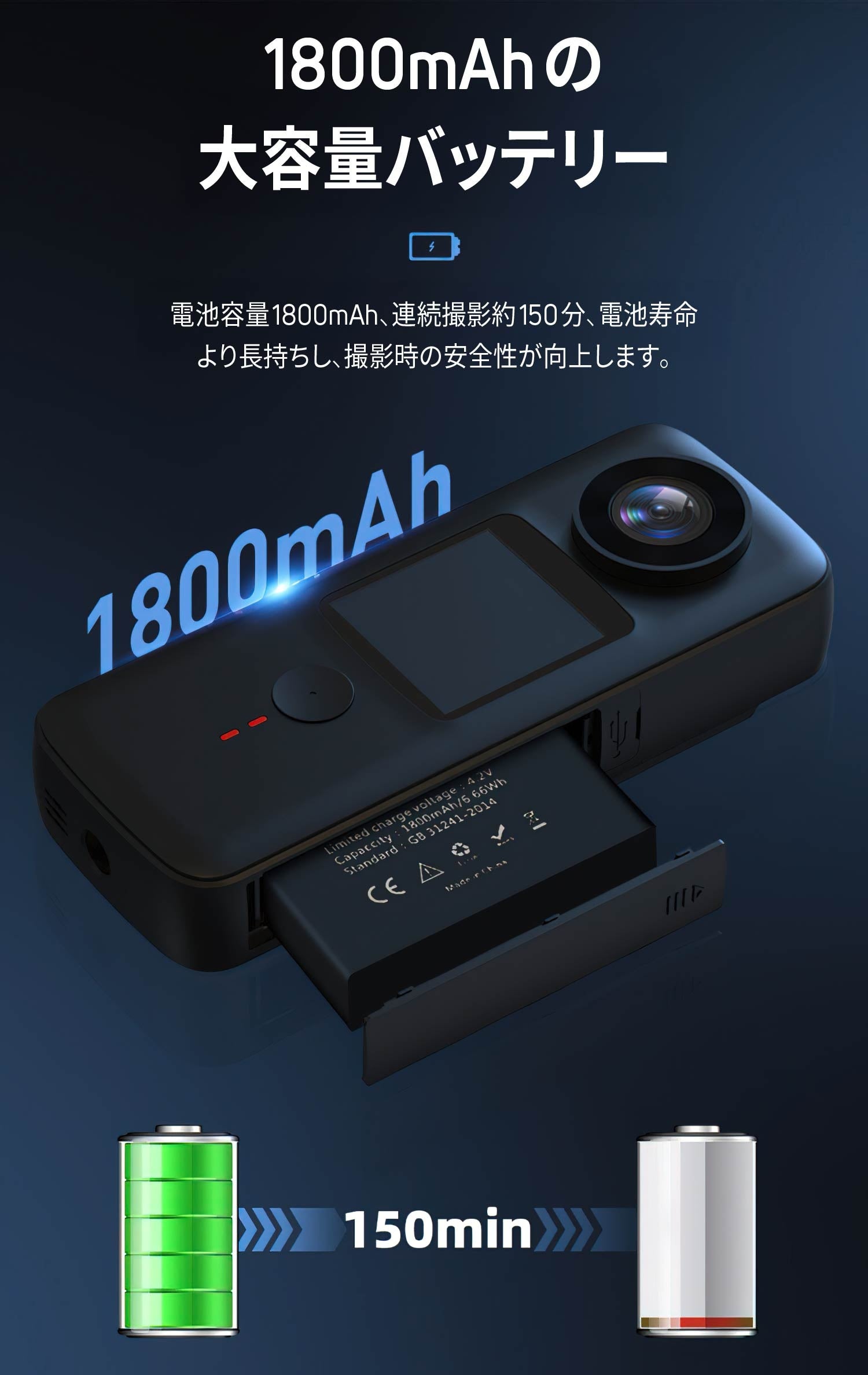 ● 即時起動機能と1800mAhの大容量バッテリーを搭載