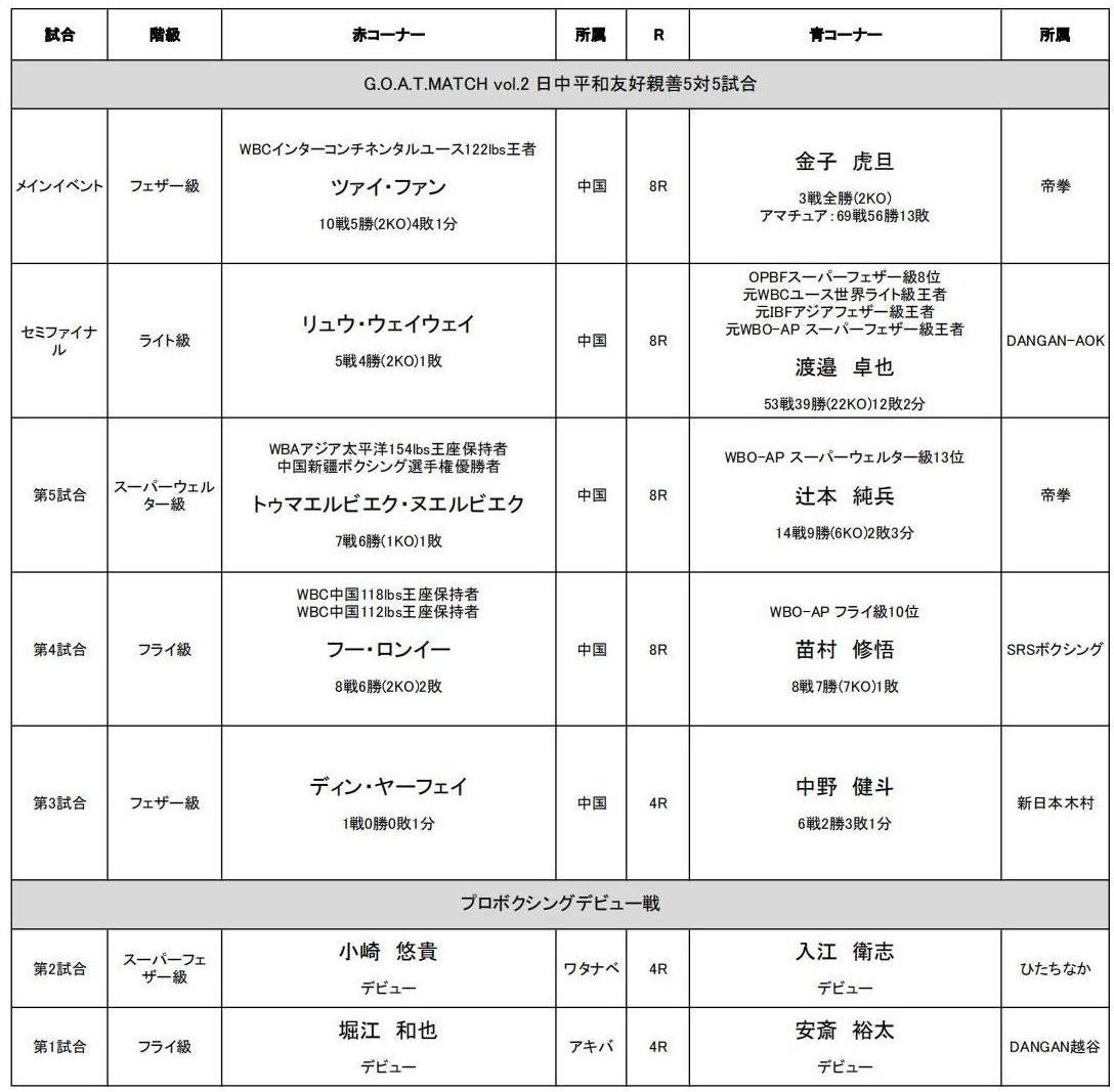 ・名称:G.O.A.T.MATCH vol.2 日中平和友好親善5対5プロボクシングマッチ