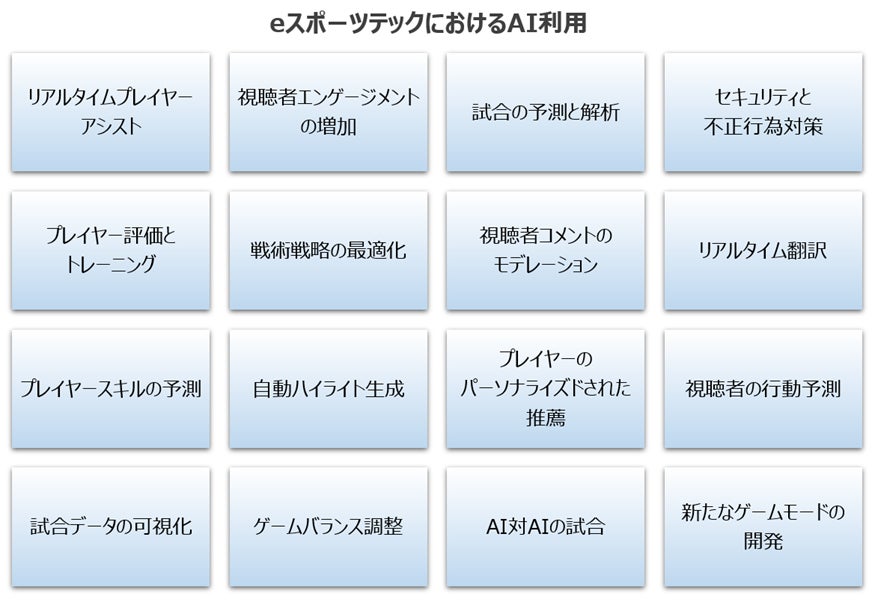 これらのAI活用の例により、eスポーツテック業界は競技体験、視聴体験、セキュリティ、ビジネス機会の向上に寄与し、成長と革新を実現しています。