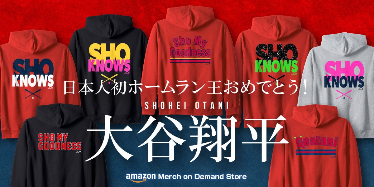 今回、大谷翔平選手がホームラン44本で初のホームラン王のタイトル獲得を記念し、日本未発売の公式ライセンスアート7点を「Amazon SPACE AGE SHOP(Merch on Demand)」に追加いたしました。