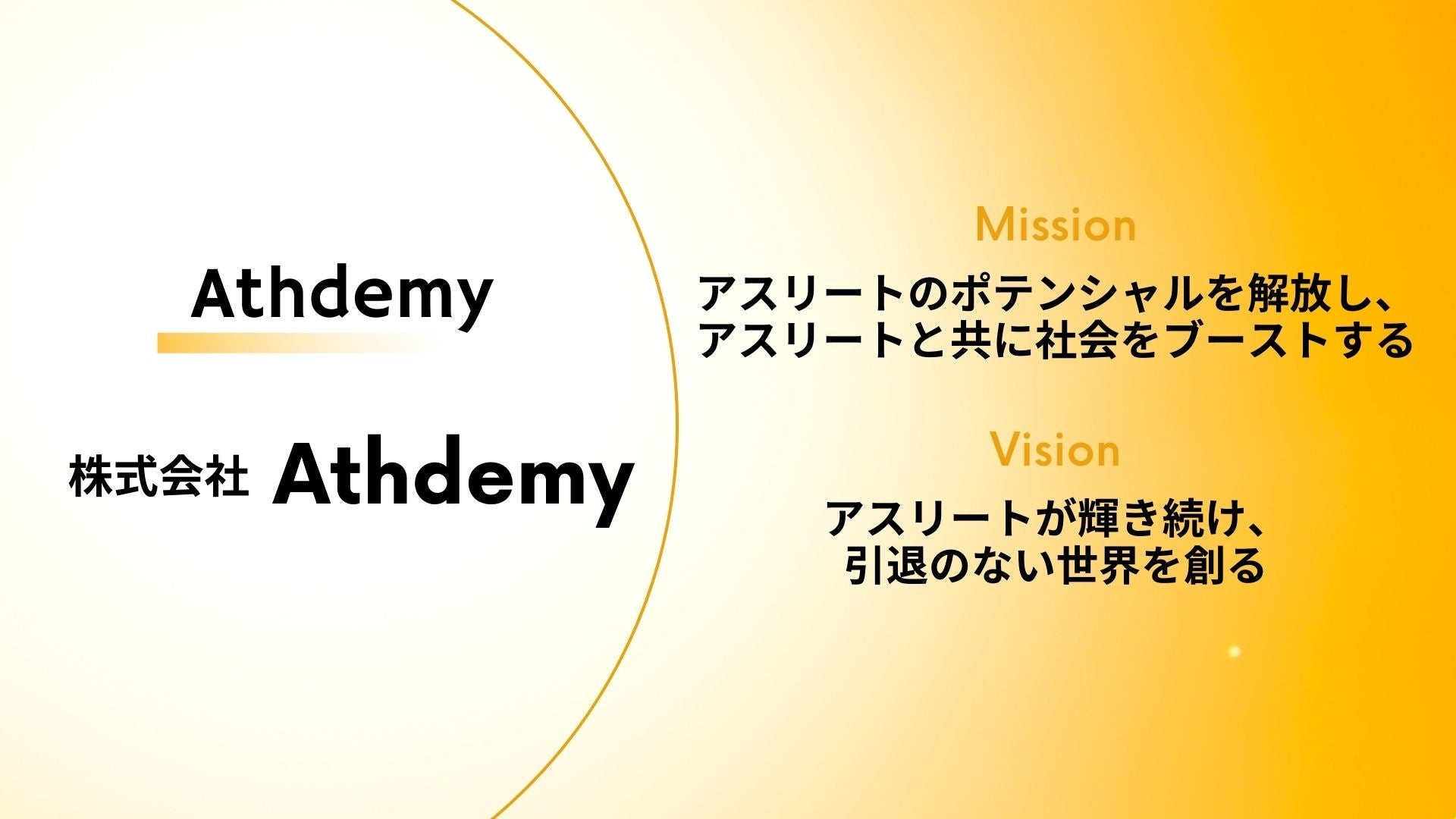 株式会社Athdemyは、単なるアスリートのセカンドキャリア支援をする企業ではなく、現役キャリアを起点に個人の成長と組織の競争力を向上させ、スポーツ界のみならず、様々なステークホルダーを巻き込み、アスリートと共に日本をドライブし、社会として漠然となっていたアスリートの価値を再定義してまいります。