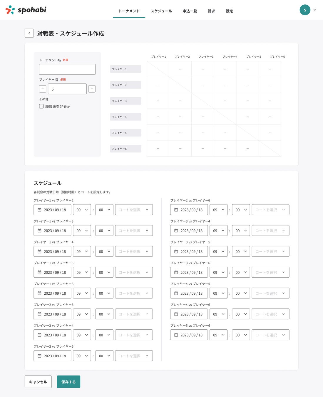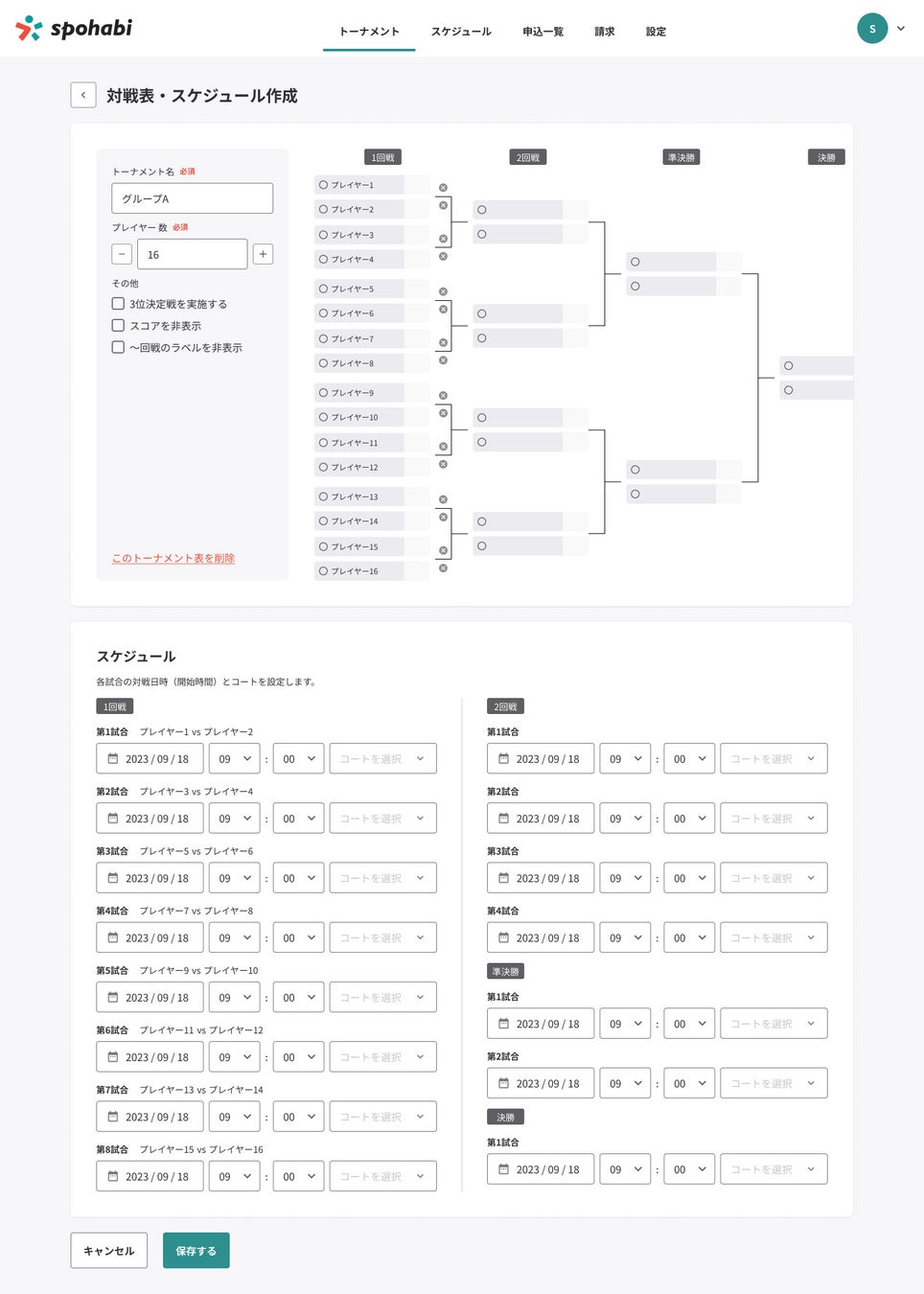 対戦表に名前をつけて、プレイヤー数を設定すると自動で対戦表のベースが作成されます。