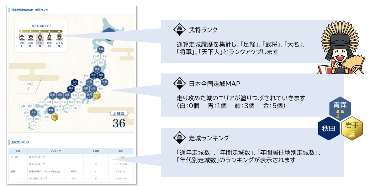 武将ランク、日本全国走城MAP、走城ランキングがリリース!“マラソン国盗り物語”が本格始動!