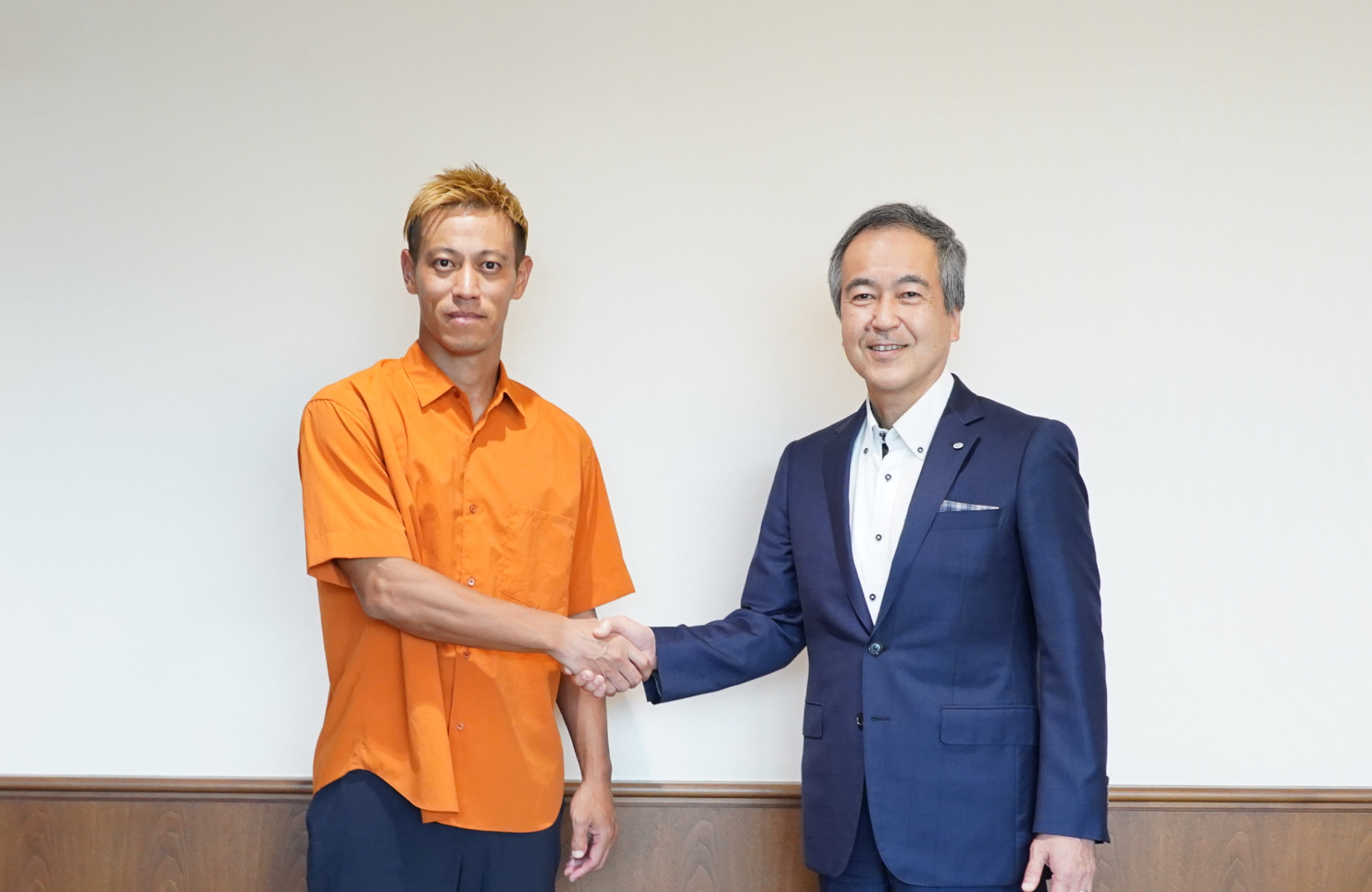 金沢大学とNowDo社代表の本田圭佑はこれまで特別講演の開催や、金沢大学の敷地内に整備したサッカー場「金沢大学SOLTILO FIELD」における石川県のサッカーの普及及び青少年の育成など、継続的な連携事業を行っております。