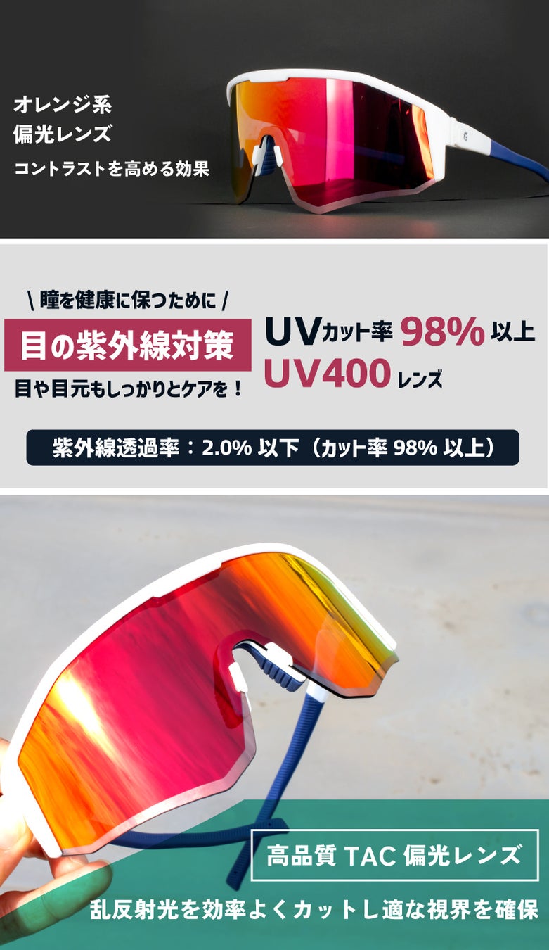 オレンジ系偏光レンズ、UV400紫外線カット |