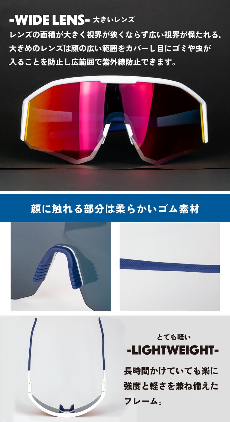 レンズが大きく目元から広範囲にサングラスの効果を発揮します。
