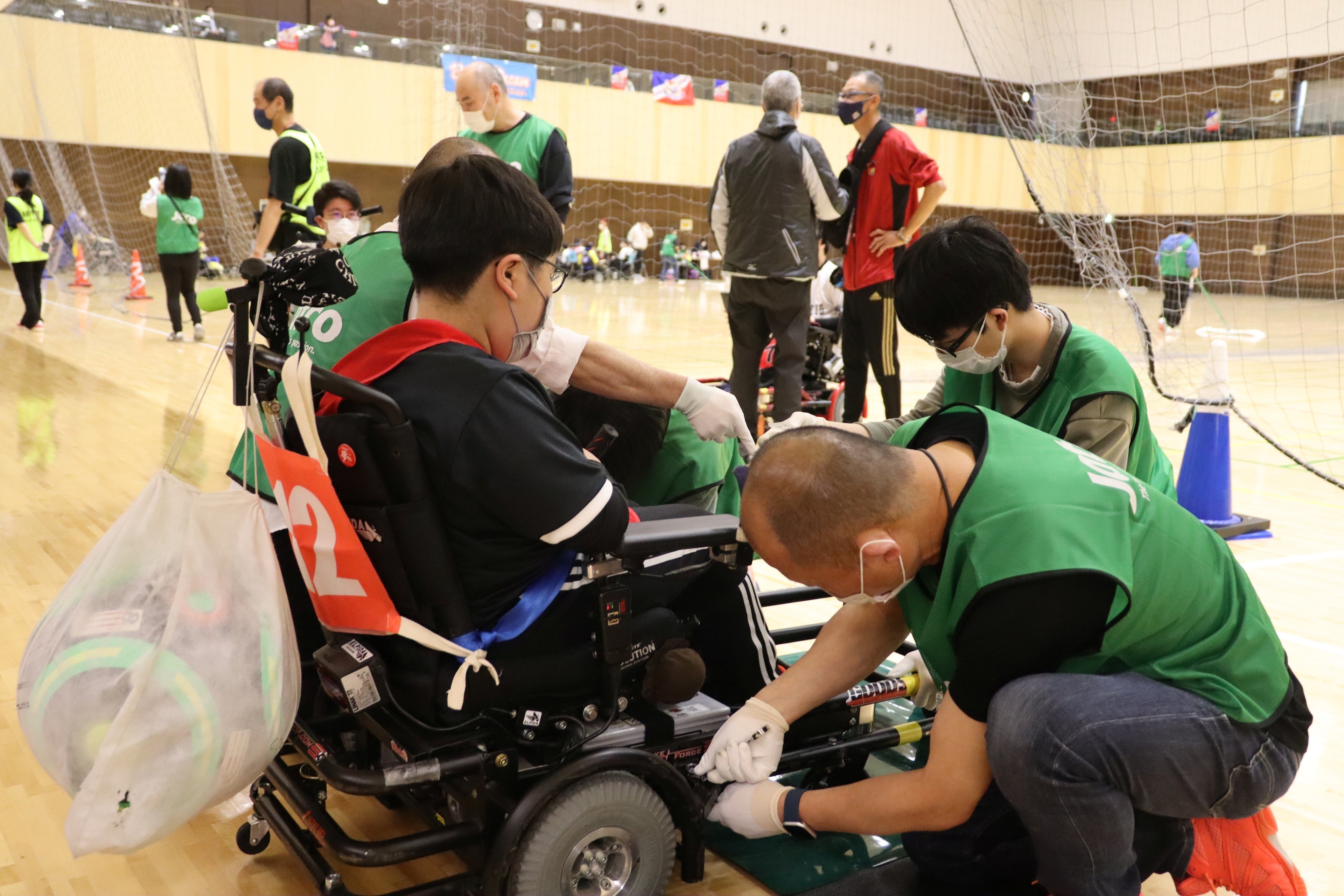 電動車椅子サッカー大会でのサポートの様子