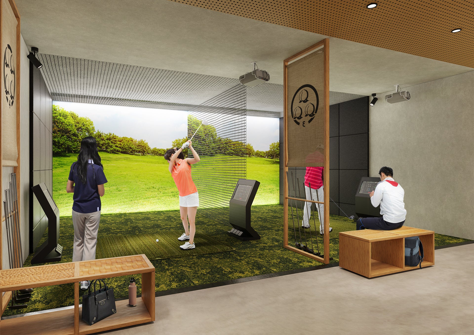 全打席には最新のシミュレーションゴルフ『GDR Plus』を導入します。また、レフティーの方向けに左右兼用打席やパターエリアも完備します。さらに、個室打席にはセントアンドリュース、富士クラシック、川奈ホテルゴルフコースなどの国内有名コースを含む200以上のワールドクラスコースを圧倒的なグラフィックで体験することができる『T2 VISION Plus』を導入し、気の合った仲間と一緒にラウンドしていただくことも可能です。