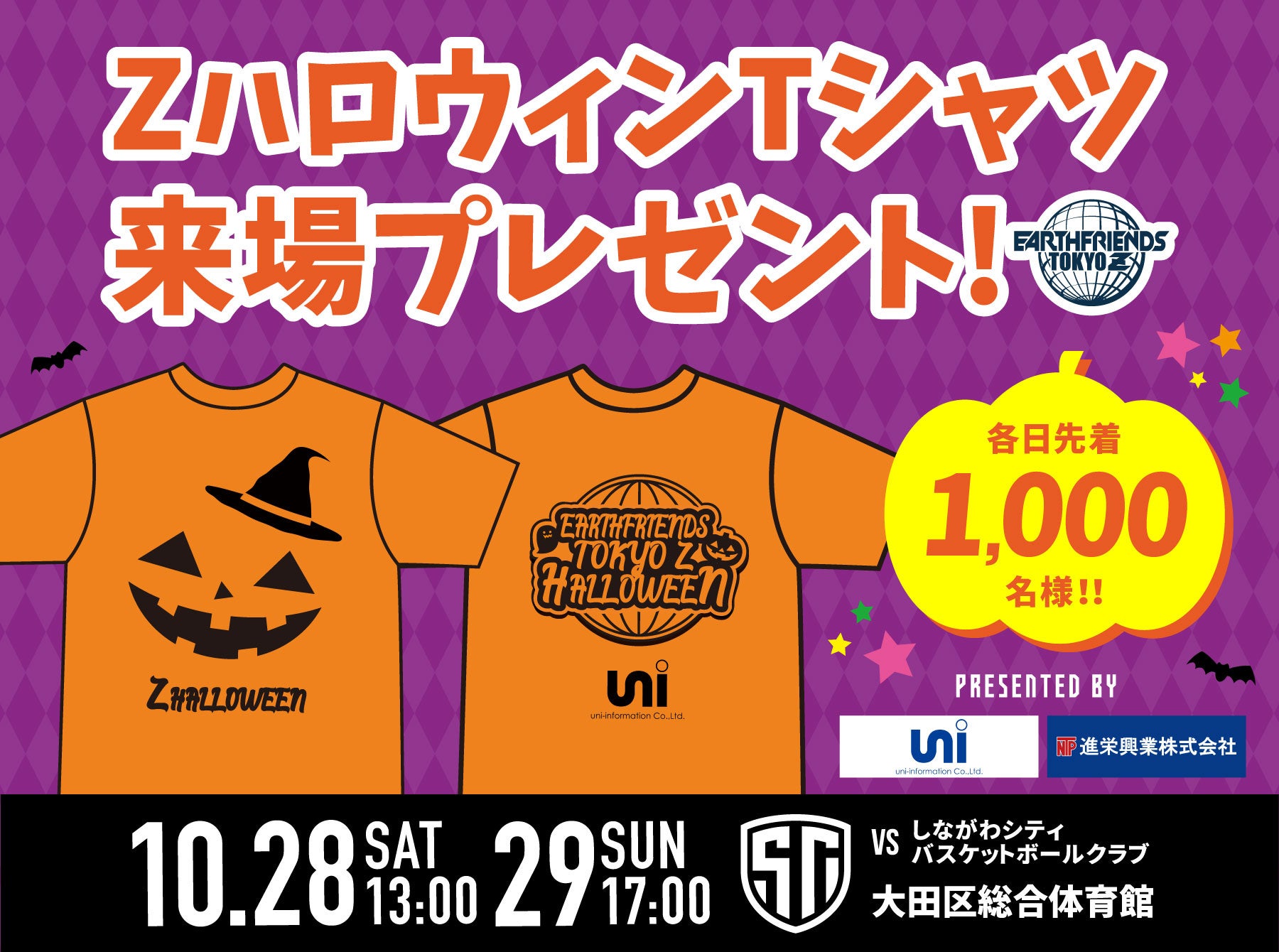 この度、アースフレンズ東京Zでは、10/28(土)・29(日)のしながわシティバスケットボールクラブ戦で、ZハロウィンTシャツを各日先着1,000名様にプレゼントすることが決定しましたのでお知らせいたします!
