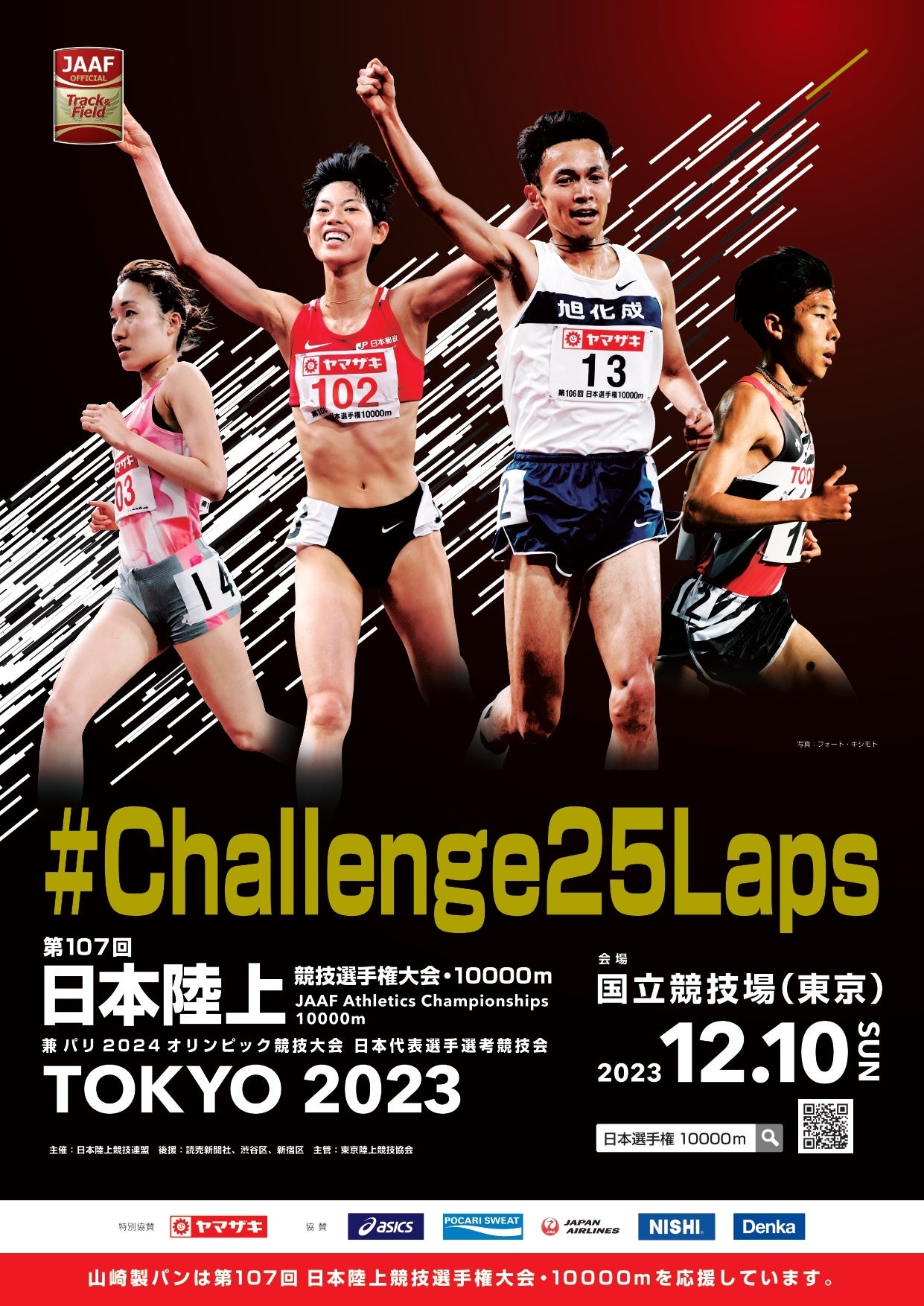 「ブダペスト2023世界選手権」10000m代表の田澤廉(トヨタ自動車)、廣中璃梨佳(JP日本郵政G)、五島莉乃(資生堂)と、日本記録保持者・相澤晃(旭化成)の4名を、日本一、そしてパリ2024オリンピック参加標準記録や自己記録の突破に向けて「Challenge」する選手たちの象徴として掲載。