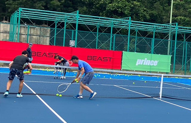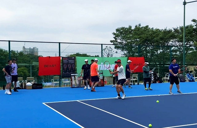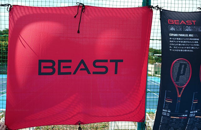 プリンスのコートでは、「BEAST」シリーズをはじめ、数量限定「EMBLEM」シリーズ、「TOUR」シリーズの試打が行えました。