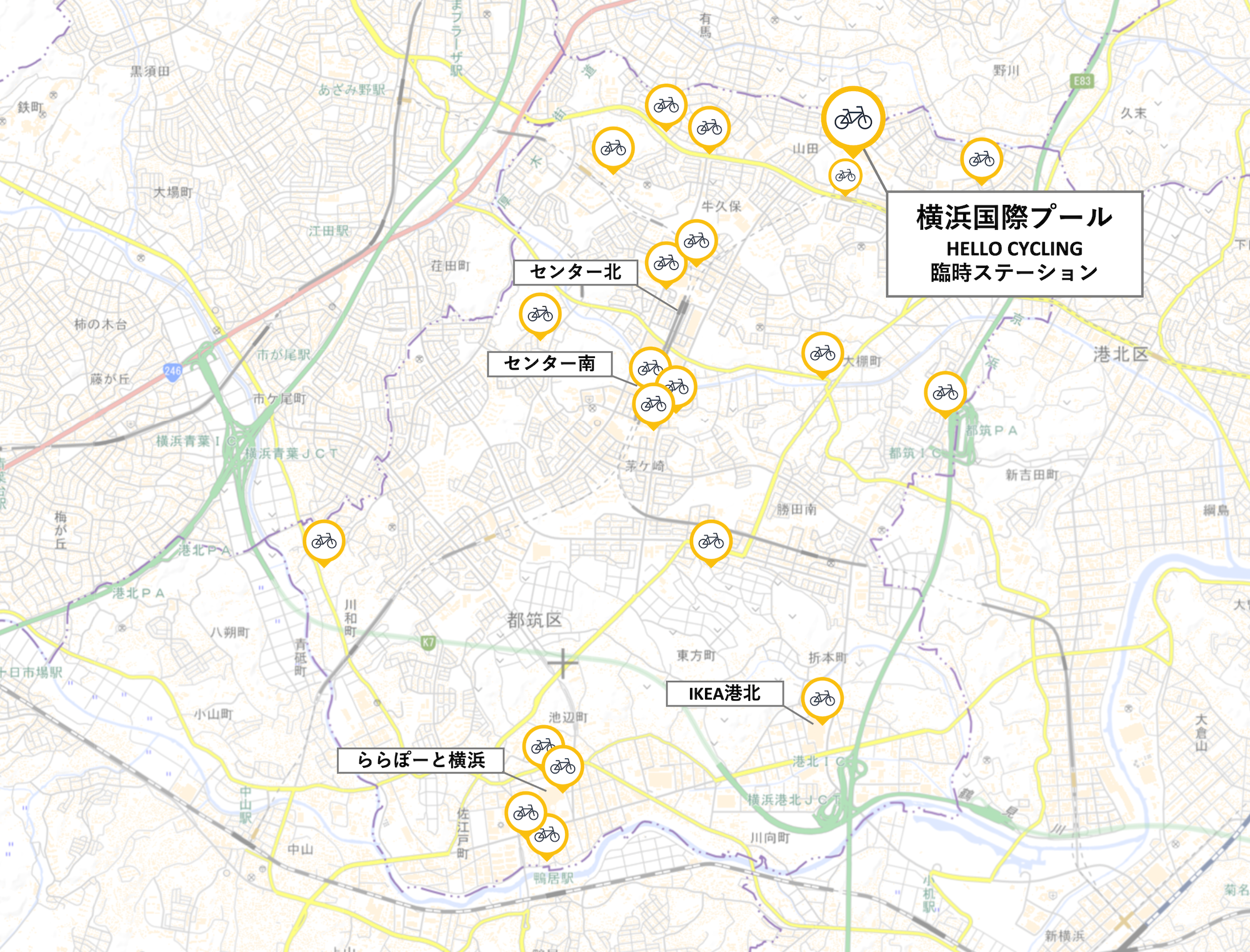 横浜市都筑区内には、20ヶ所のステーションがあります。