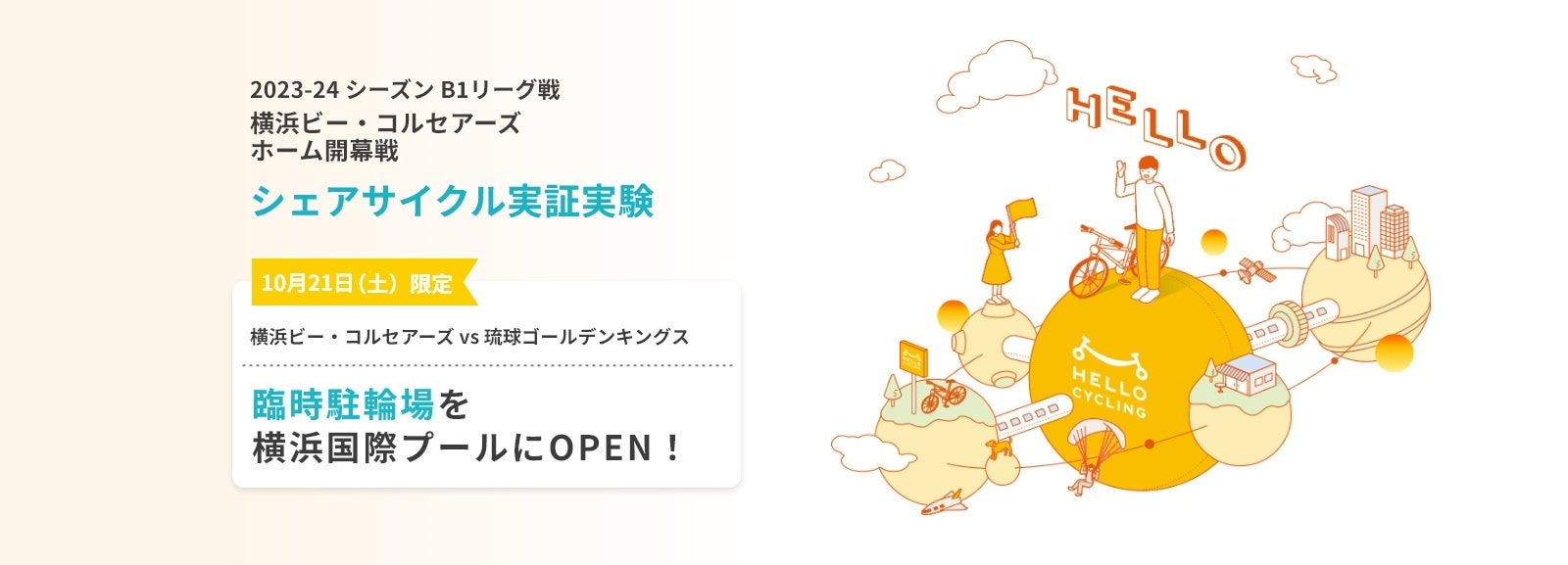 本実証実験は、ファンの皆様の観戦満足度向上につながる試合前後の快適な移動手段提供と、試合開催日の会場周辺の混雑や渋滞問題をはじめとする地域課題解決を目指しています。OpenStreetは、ホームゲーム会場である横浜国際プールへ「HELLO CYCLING」の特設ステーションを設置することにより、試合前後のファンの皆様にシェアサイクルを活用したフレキシブルな移動を可能にし、会場周辺の混雑や渋滞の緩和を目指します。