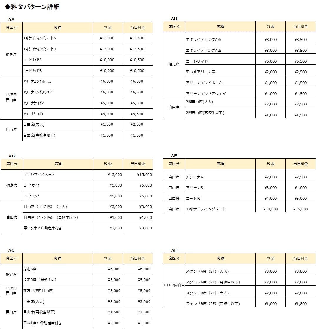 ・お付き添いの方はパイプ椅子でのご観戦となります。また同伴者が2名以上の場合は同様の席種をご購入ください。