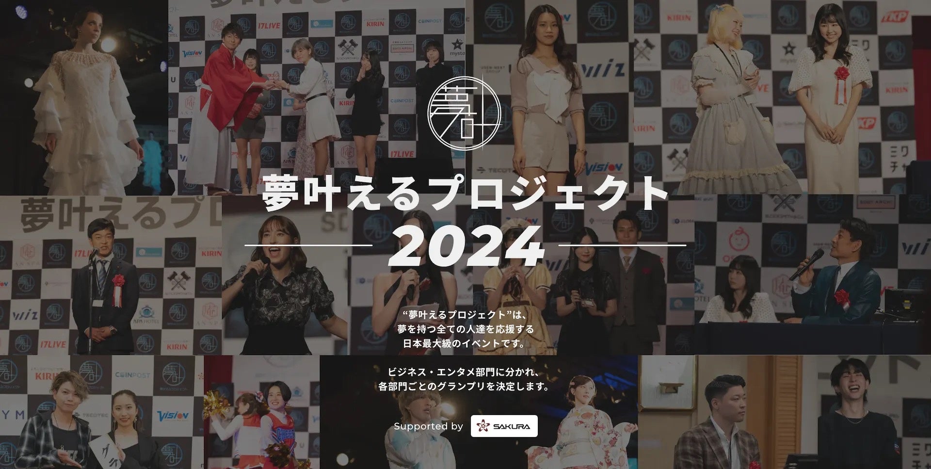 “夢叶えるプロジェクト”は、飲食・観光・WEB・ファッションなど部門別にグランプリを決め、「夢にチャレンジする」人たちをバックアップしていく、夢を持つ全ての人を応援する日本最大級エンタメビジネスコンテスト。今年3月27日に帝国ホテルにて“夢叶えるプロジェクト授賞式”が開催され、特別審査員を務めるゆうこすやはじめしゃちょー、アパホテル社長の元谷芙美子などに出席して頂きました。配信や動画・書類などの予選を経て最終審査、全10部門から1名ずつグランプリが決定しました。今年度も“夢叶えるプロジェクト2024”を開催中。今後、様々なオーディションやイベントを開催していく予定です。