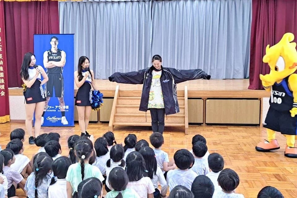 2023年10月10日(火)、シーホースくんとSuper Girlsの ASAMIと TOMOMIが第二早蕨幼稚園(岡崎市)を訪問し、園児の皆さんと一緒にクイズやダンスを楽しみました。