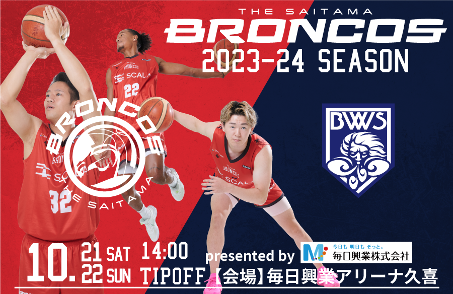 10/21(土).22(日) さいたまブロンコスvs福井ブローウィンズ presented by 毎日興業㈱ 会場:毎日興業アリーナ久喜