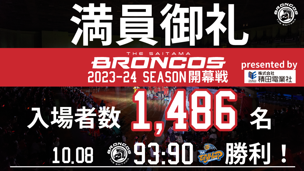10/7(土)・10/8(日)よりさいたまブロンコスの2023-24SEASONが開幕しました。第1節は両日ともにトライフープ岡山に逆転勝利、特にGAME2は最大22点差をリードされるも3度の延長戦を経て勝利しました。