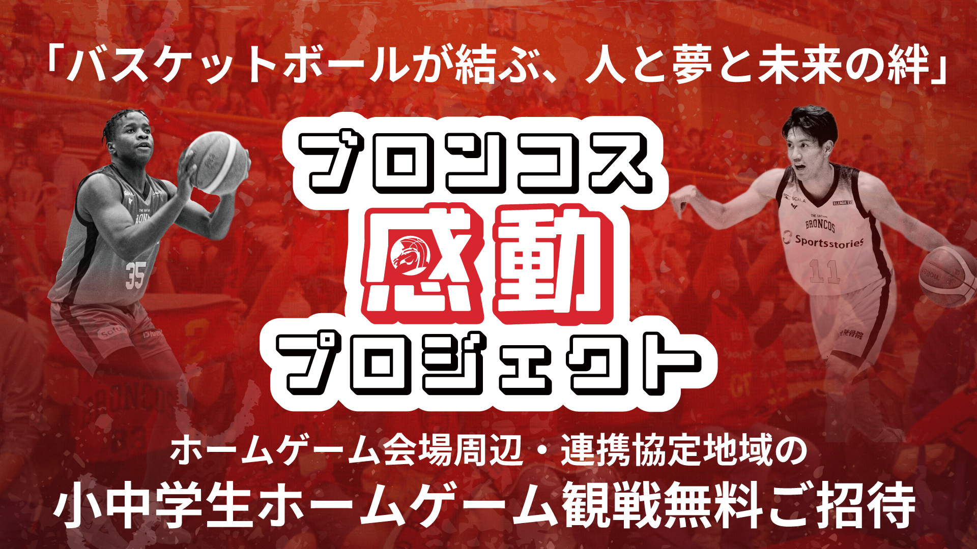 さいたまブロンコスは、連携協定を締結する自治体在住・在学の小・中学生を対象となるホームゲームに無料招待いたします。プロバスケットボール選手による熱気あふれる試合を会場でご覧いただき、その感動体験を通じこれからの未来を強く生き抜く“きっかけ”となって欲しいと願い発足した『ブロンコス感動プロジェクト』を実施します。