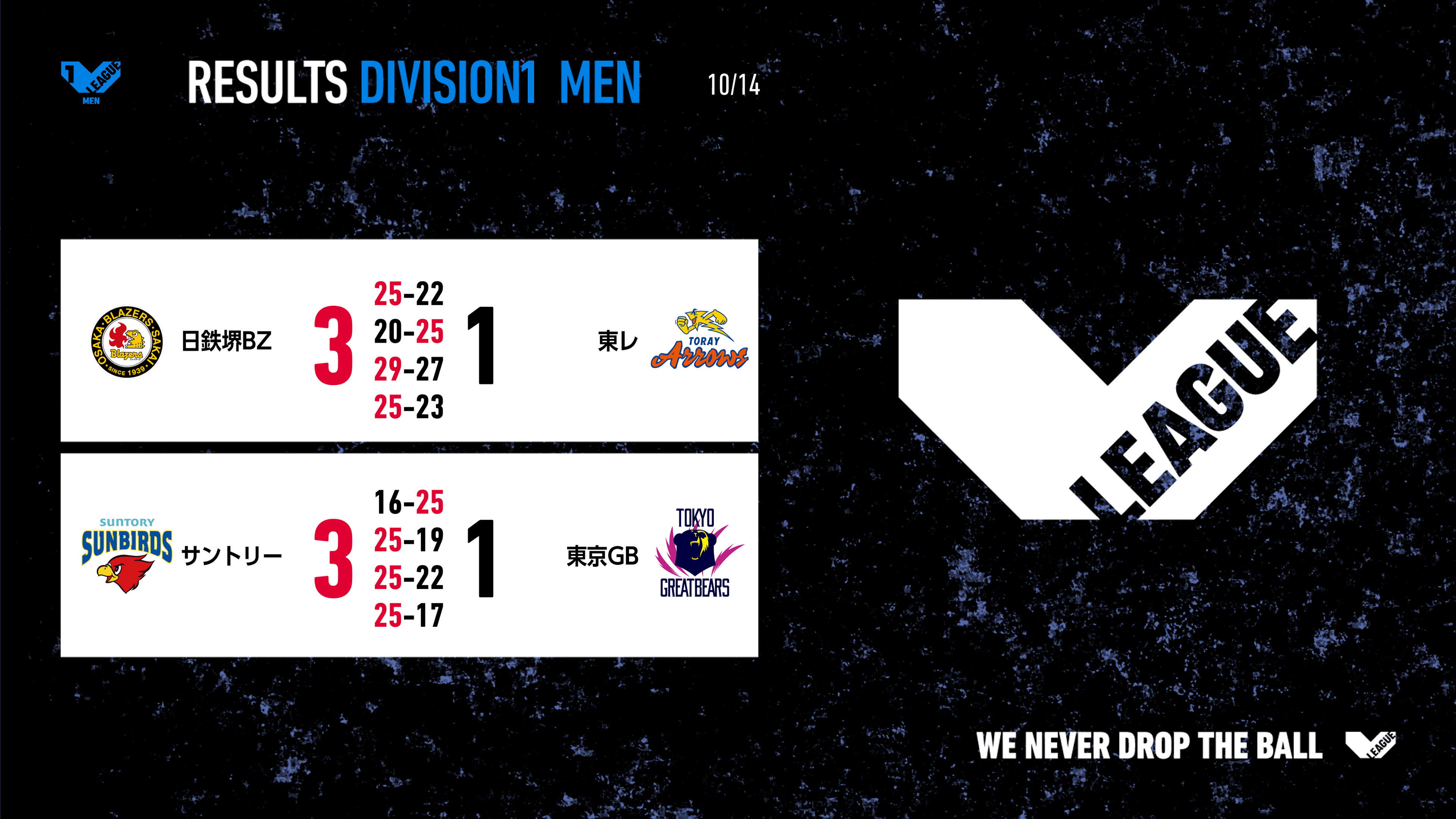 バレーボール国内最高峰リーグ V.LEAGUE【10月14日の試合結果】