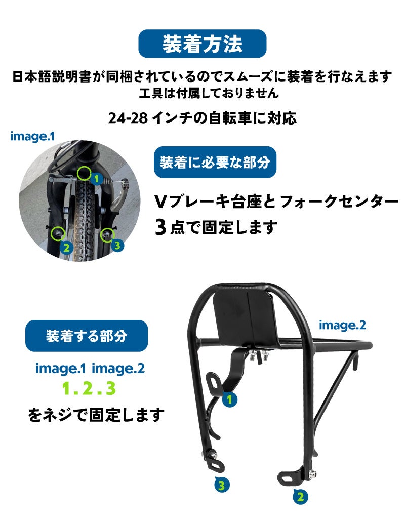 Vブレーキ装着の24-28インチ自転車に対応します(クロスバイクやMTB、ミニベロなど)