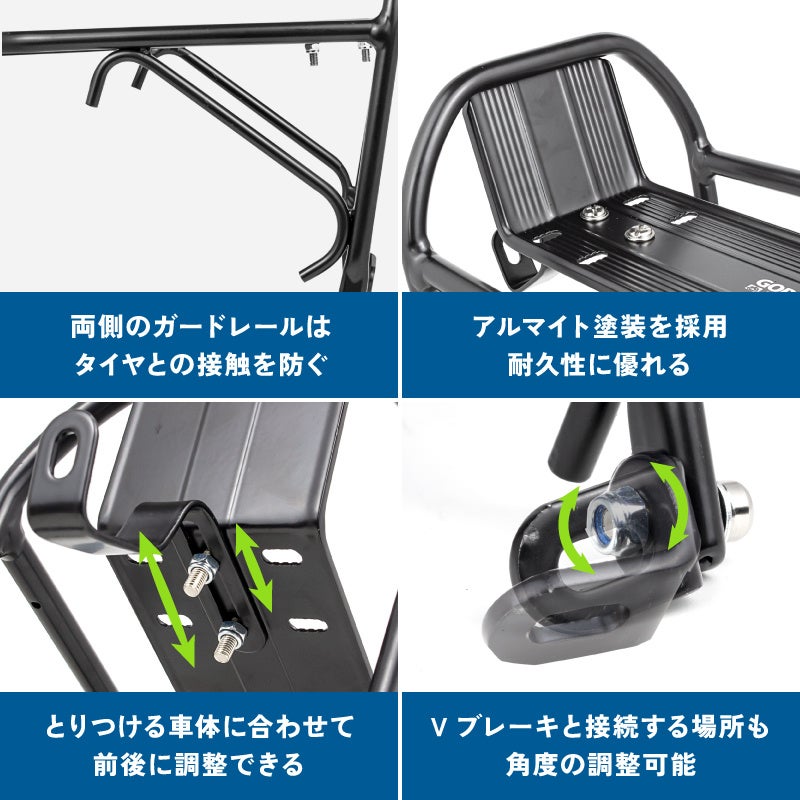 スポーツ自転車でのツーリングやお買物が多い街乗りにぴったりのフロントキャリアです。