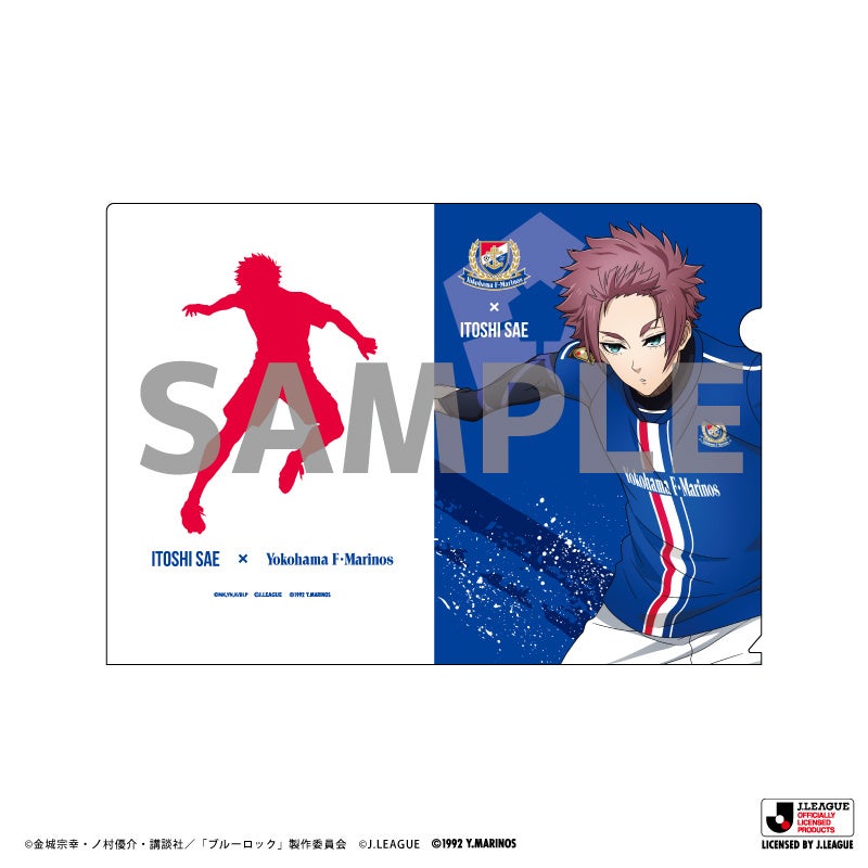 横浜F・マリノスのユニフォームを着たブルーロックに登場するキャラクター「糸師冴」のクラブ限定描き下ろしユニフォームビジュアルイラストを使用したグッズを