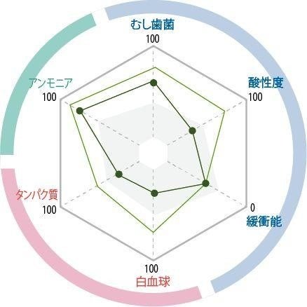 測定結果をレーダーチャートに反映し、ビジュアル化することで、自覚しづらい口腔内の状態を、客観的なデータを通じて把握することができます。