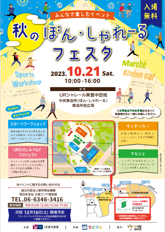 株式会社ウィンゲートは、イベント主催の独立行政法人都市再生機構(UR都市機構)「秋のぼん・しゃれーるフェスタinシャレール東豊中団地」の中で「スポーツ縁日」を2023年10月21日(土)、開催いたします。