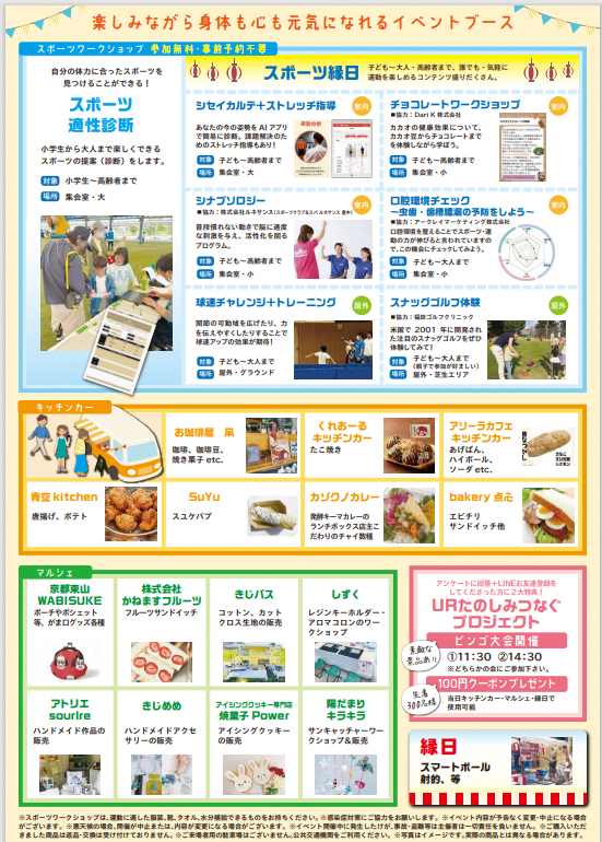 ▶内容:①スポーツ縁日②マルシェ③キッチンカー