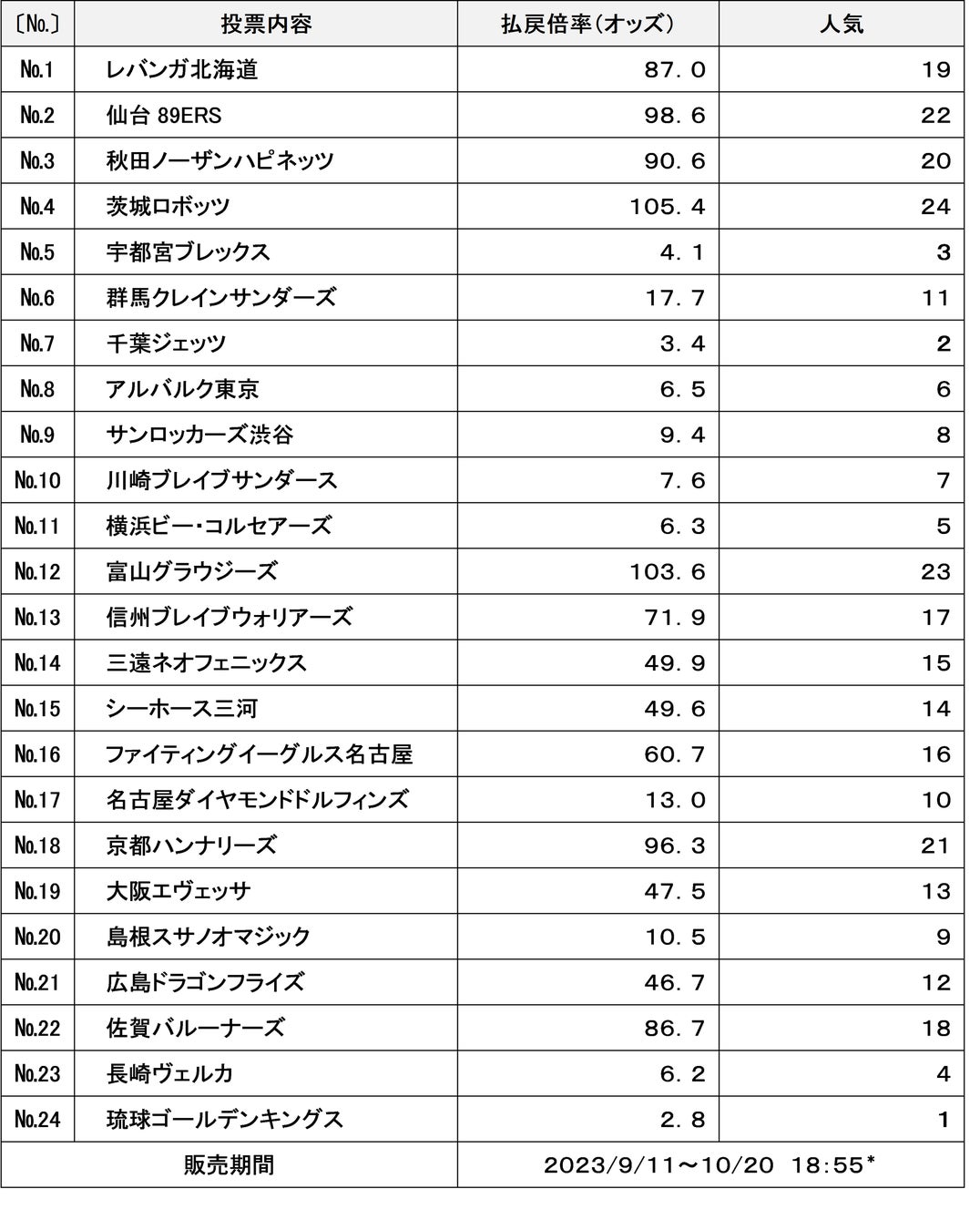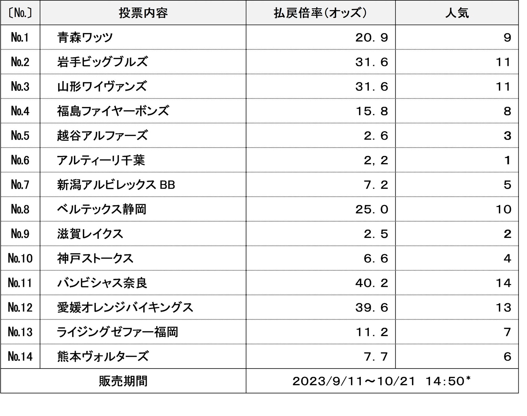 本日は、B1、B2の優勝チームを予想するくじの投票状況を紹介いたします。