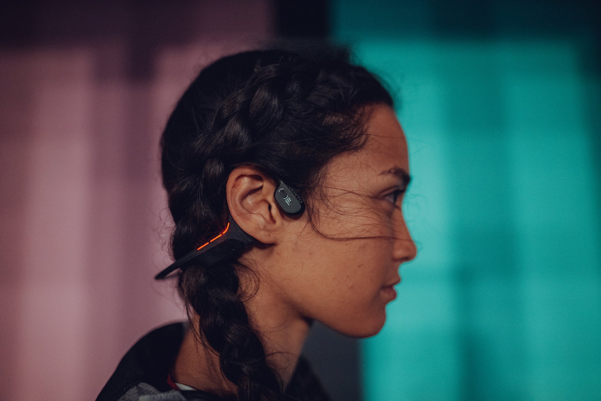 スント ウィングは、一般的な耳を覆うヘッドホンと異なり、骨伝導を使って音楽を楽しめるヘッドホンです。環境音を聞きながら、同時に音楽を楽しめるので、ランニング中に接近する車の走行音を聞き分けたり、オンライン会議中でも外からの音を聞いたり、音楽を聞きながら自然の音を楽しむこともできます。