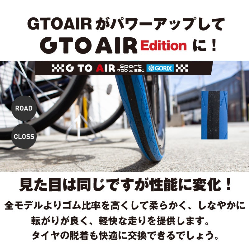 全モデルのGTOAIRよりもゴムの比率が高くなり柔らかくしなやかなタイヤにバージョンアップしました。