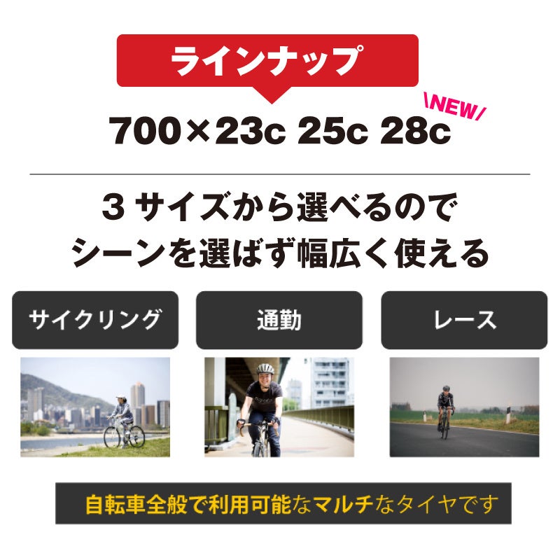 ロードバイクやクロスバイク、ピストバイクに最適な自転車用タイヤです。