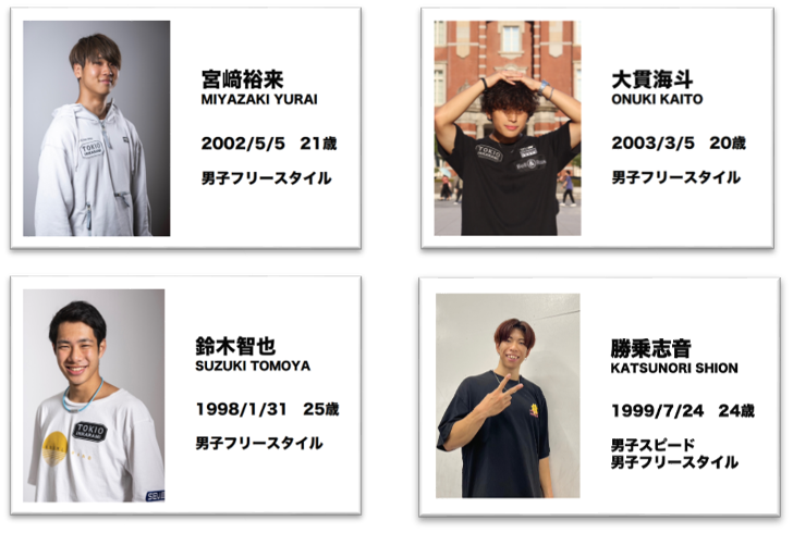 種目:フリースタイル 男女、スピードラン 男女、プレシジョンスキル 男女