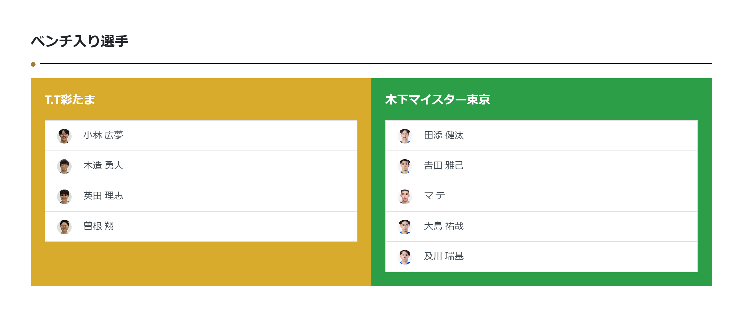 ノジマTリーグ 2023-2024シーズン 公式戦 10月22日開催の「TT彩たま vs 木下マイスター東京」のベンチ入り選手を発表いたします。