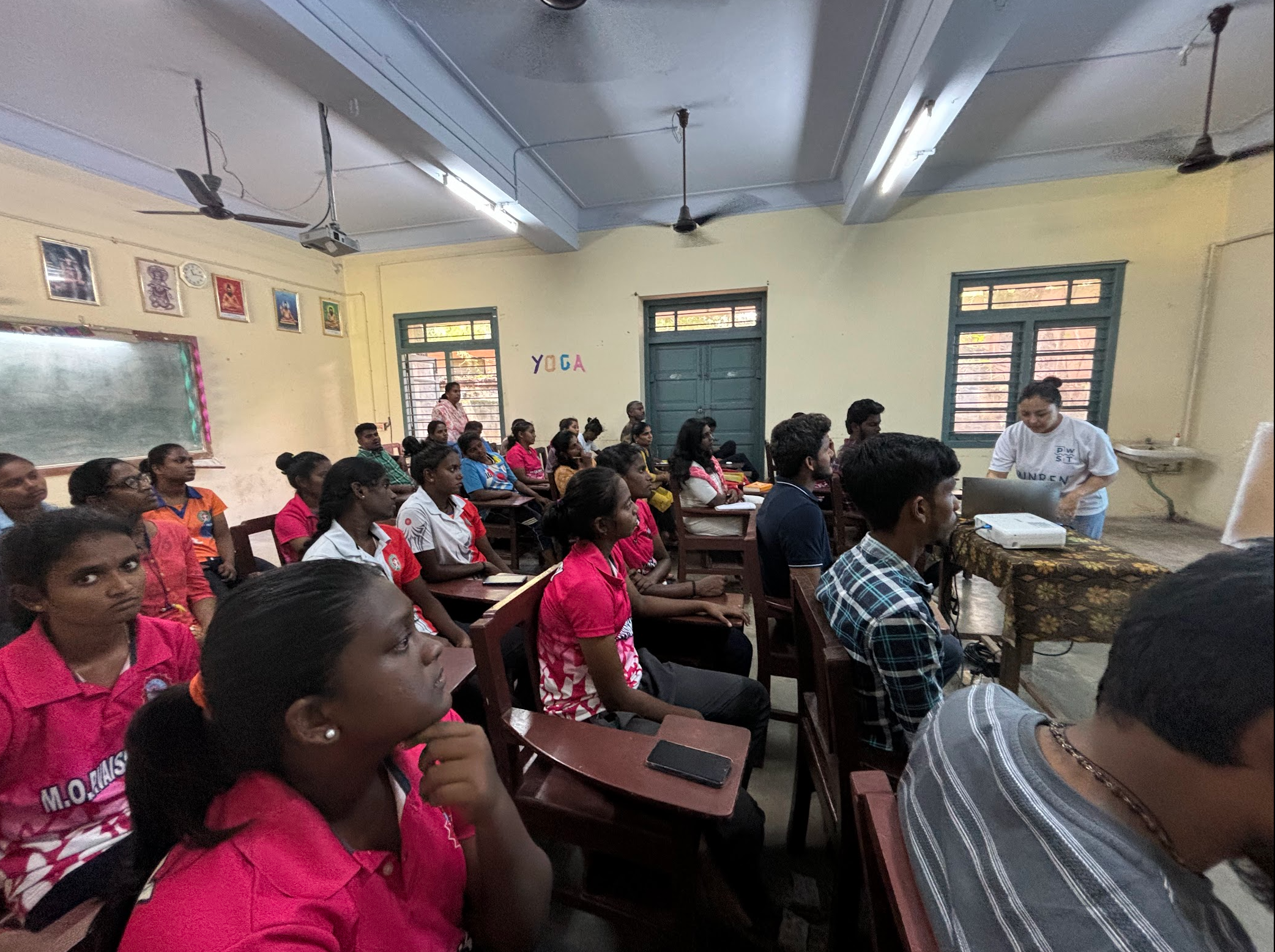 2023年10月3日、岡崎竜城スイミングクラブ、及びその子会社の一般社団法人パワーストロークは、インドのタミル・ナードゥ州チェンナイにあるマドラス大学にて、体育学部の生徒計42名を対象に卓上で水難について学ぶ「陸でもできる水難訓練」の授業を開講しました。