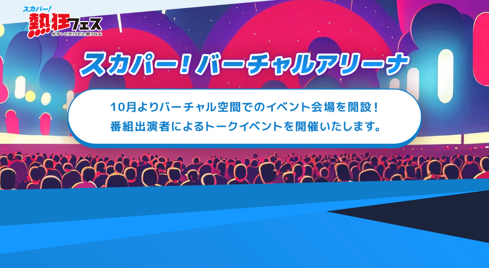 「スカパー! 熱狂フェス」とは、スカパー! が、放送はもちろん、配信、バーチャル空間やリアルイベントでも、ファンの皆様に楽しい体験をより拡張していただける“熱狂”コンテンツをたっぷり揃えたキャンペーンです。