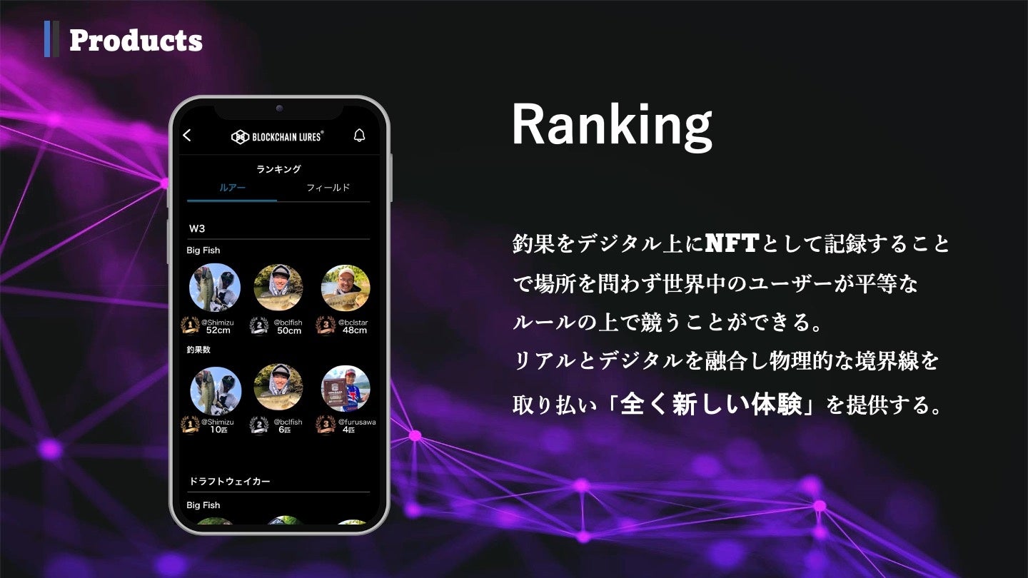 また、NFT化によって「いつ、どこで、誰が何cmのバスをどのルアーで釣ったのか」記録が残るということは、ユーザーの信頼とリアルな熱量を可視化し、証明することになります。