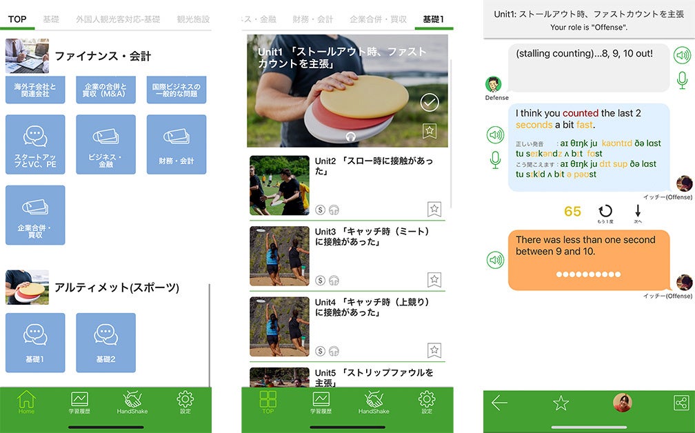 パーソナルレシピ型英会話プログラム(4ヶ月)をアルティメット日本代表に選出された伊藤剣大選手、田島美和選手など数十名に受講いただいております。選手達はアプリで日々学習をしながら、オンラインレッスンで英会話学習に挑戦していただいております。