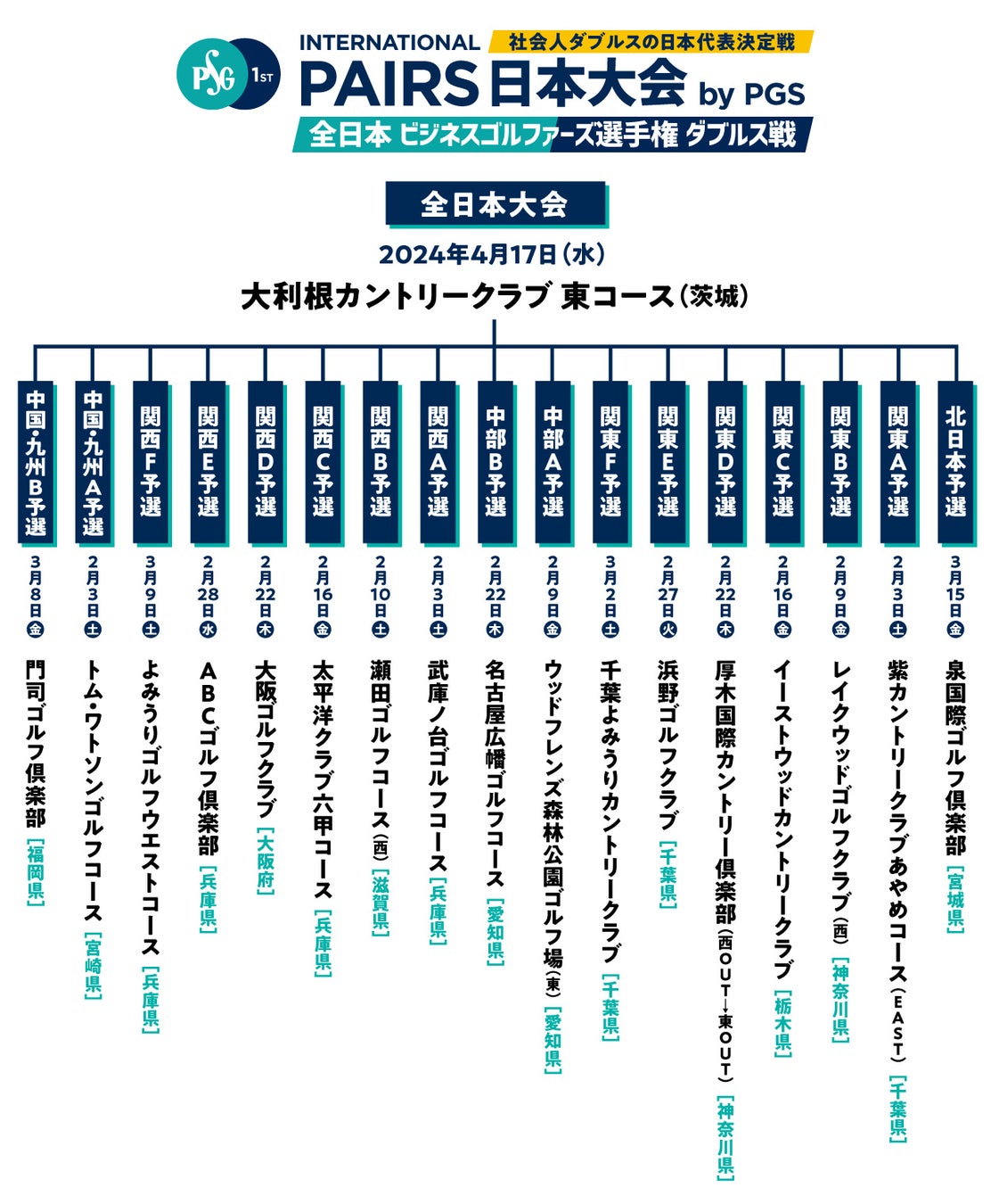 日本大会開催においては、公益社団法人日本パブリックゴルフ協会と提携し「International Pairs日本大会 by PGS 全日本ビジネスゴルファーズ選手権ダブルス戦」として開催することが決定いたしました。