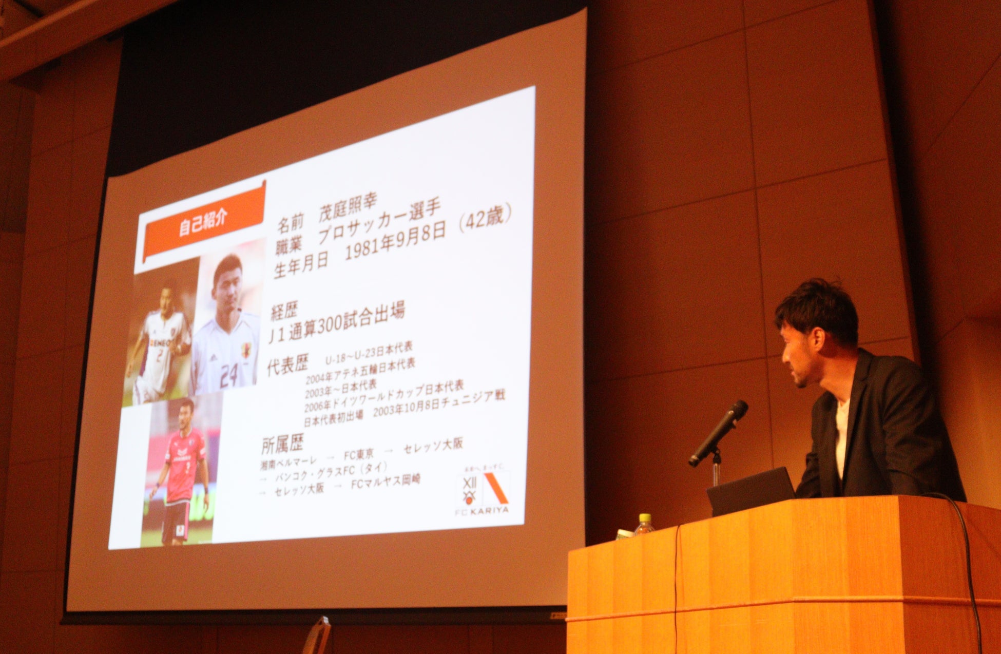 刈谷市産業振興センターにて行われたスポーツセミナーには第一部と第二部に分かれており、第一部は柴崎真木先生の『パフォーマンスを上げるための食事と栄養』をテーマにお話しいただき、第二部では茂庭照幸選手が『食べることも能力』をテーマにお話しいたしました。
